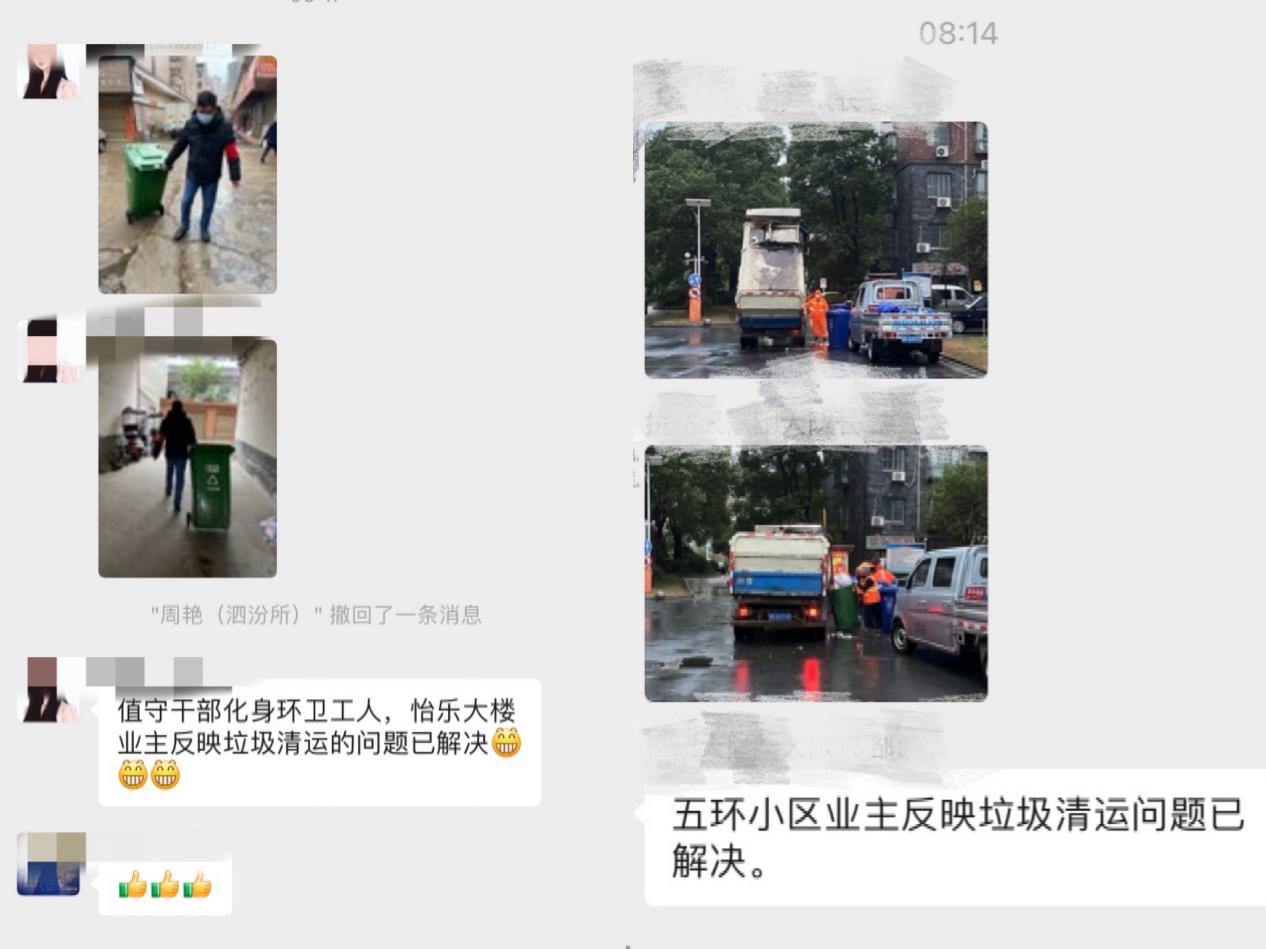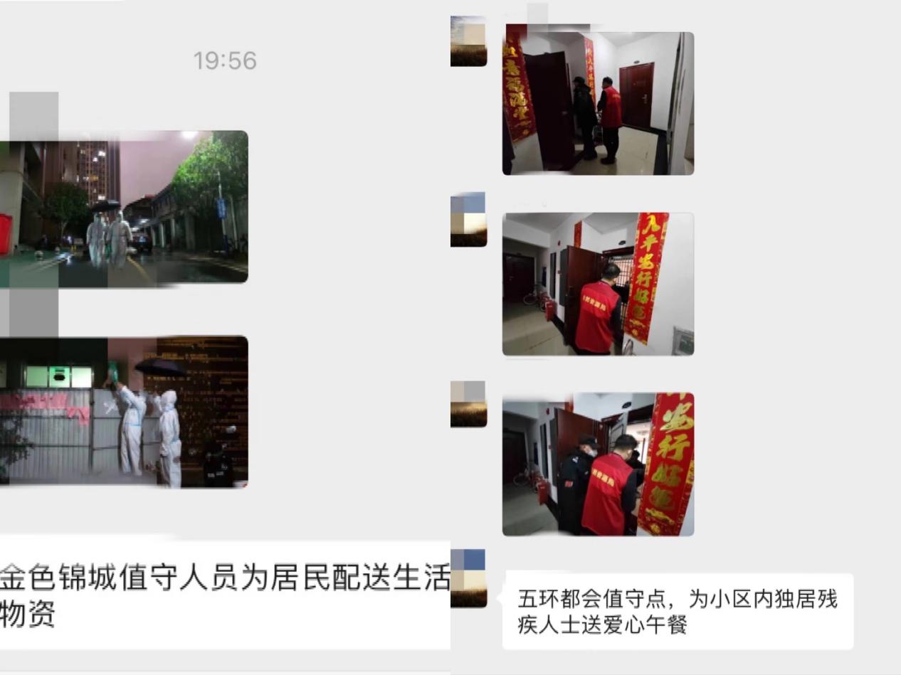值守中,暖心一幕处处都有,有值守干部在了解到五环都会小区内有独居残障人士时,主动联系局领导,每天帮忙解决三餐;值守金色锦城高风险区域的干部每天准时为居民配送生活物资、组织有序核酸;当怡乐家属楼等处居民反映垃圾清运问题时,志愿者迅速化身环卫工人,帮忙处理垃圾......
