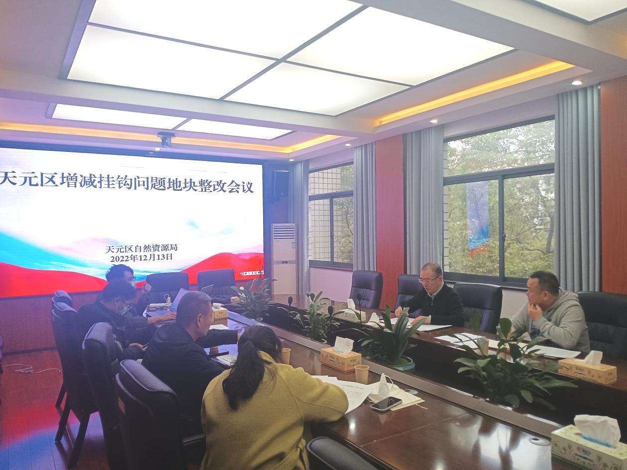 12月14日,区自然资源局召开天元区增减挂钩项目"回头看"问题地块整改推进会,听取工作进展,研究存在问题,明确整改措施和解决时限。区自然资源局局长肖振华主持并召开会议,局分管领导、耕保股、村镇集团工作人员及技术单位参加会议。