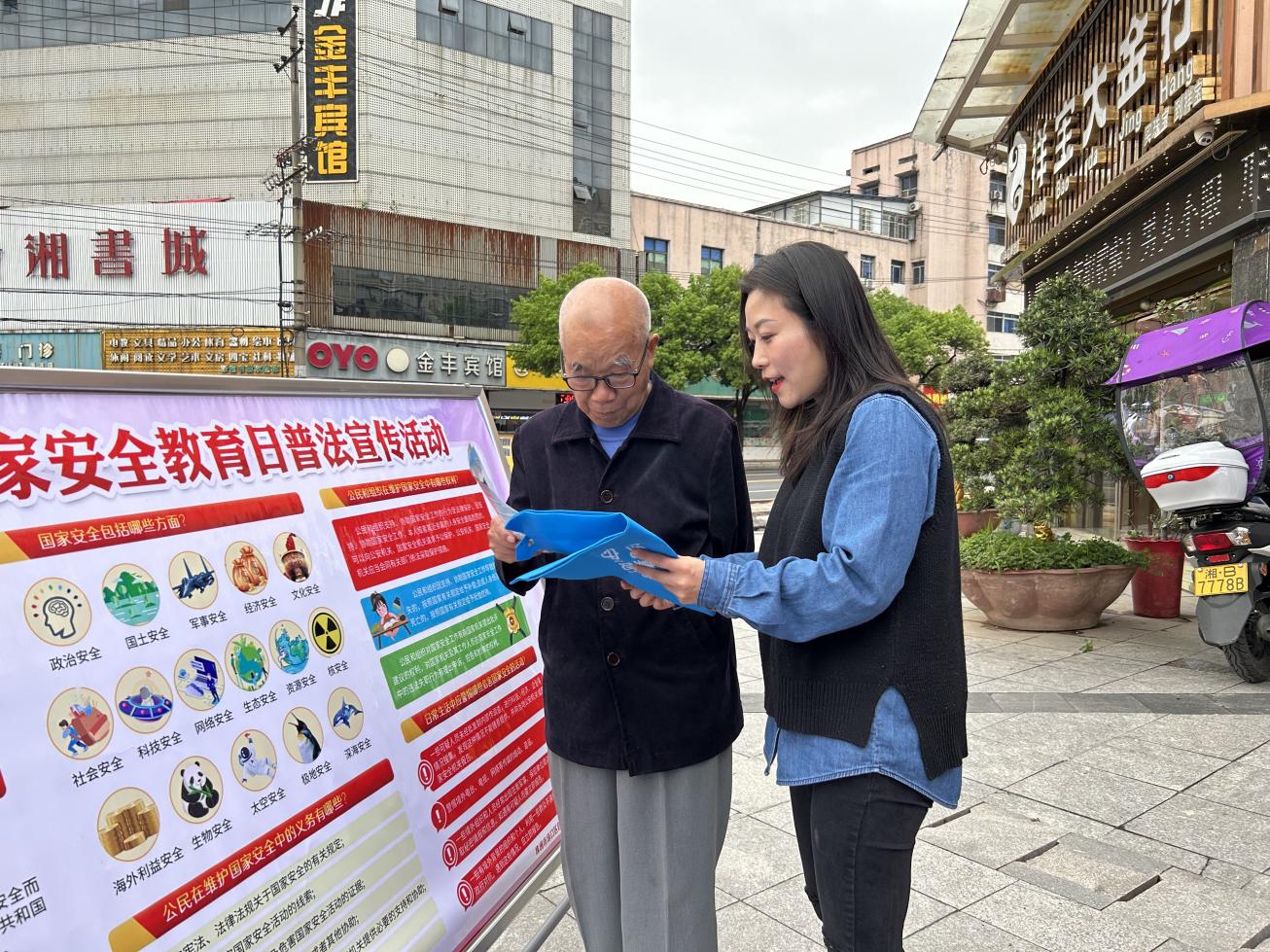 4月14日,党总支结合主题党日活动,在渌口区中央时代广场,通过设立咨询台、散发宣传单、摆放宣传展板等形式,全方位、多途径向过往群众宣传解读国家安全教育知识,着力推动国家安全理念深入人心、落地生根。