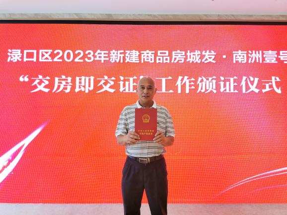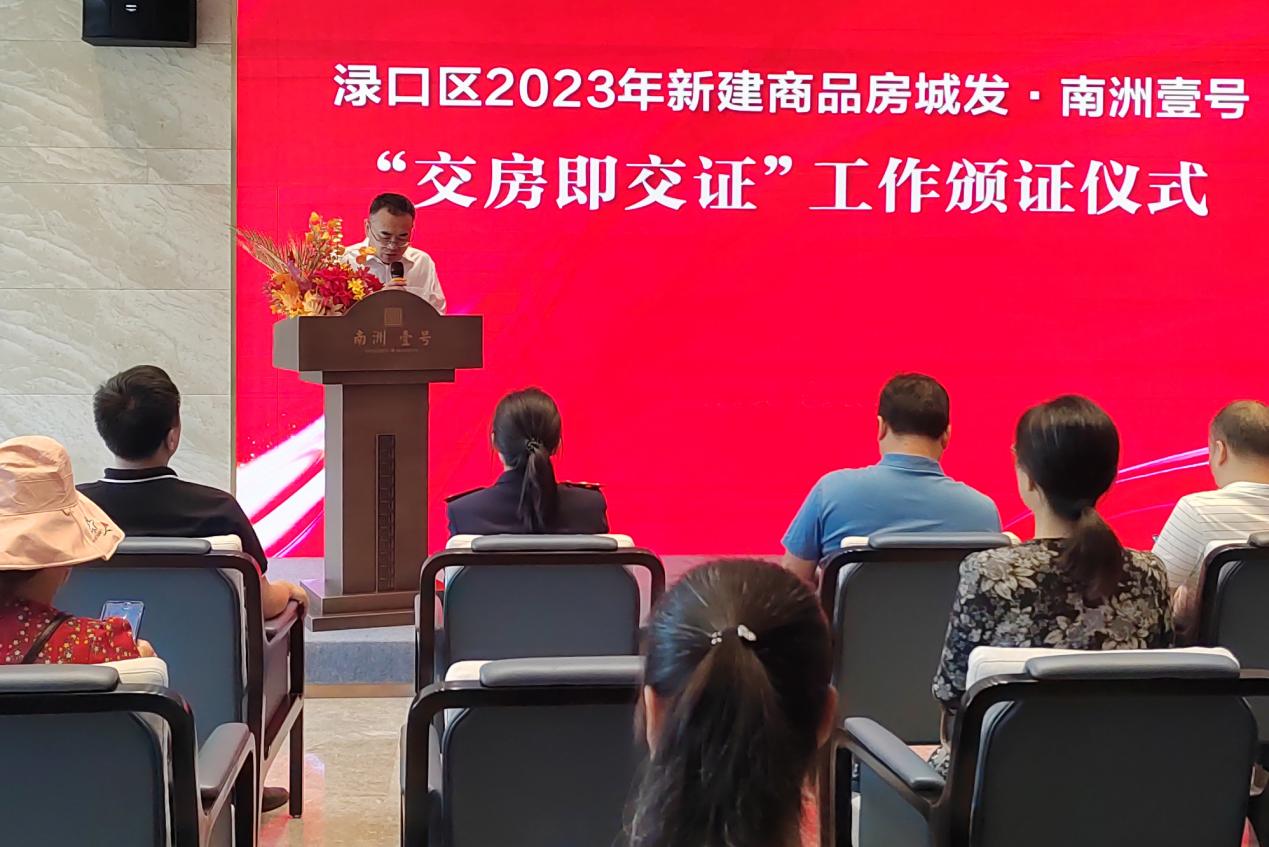 渌口区自然资源紧扣打好服务发展"六仗"总体要求,持续打好重点民生保障仗。5月15日,2023年新建商品房"交房即交证"仪式在城发·南洲壹号营销中心圆满举行。区自然资源局、区住建局等相关部门,株洲城发置地集团、株洲湘渌建设发展有限公司以及南洲壹号部分业主出席活动。