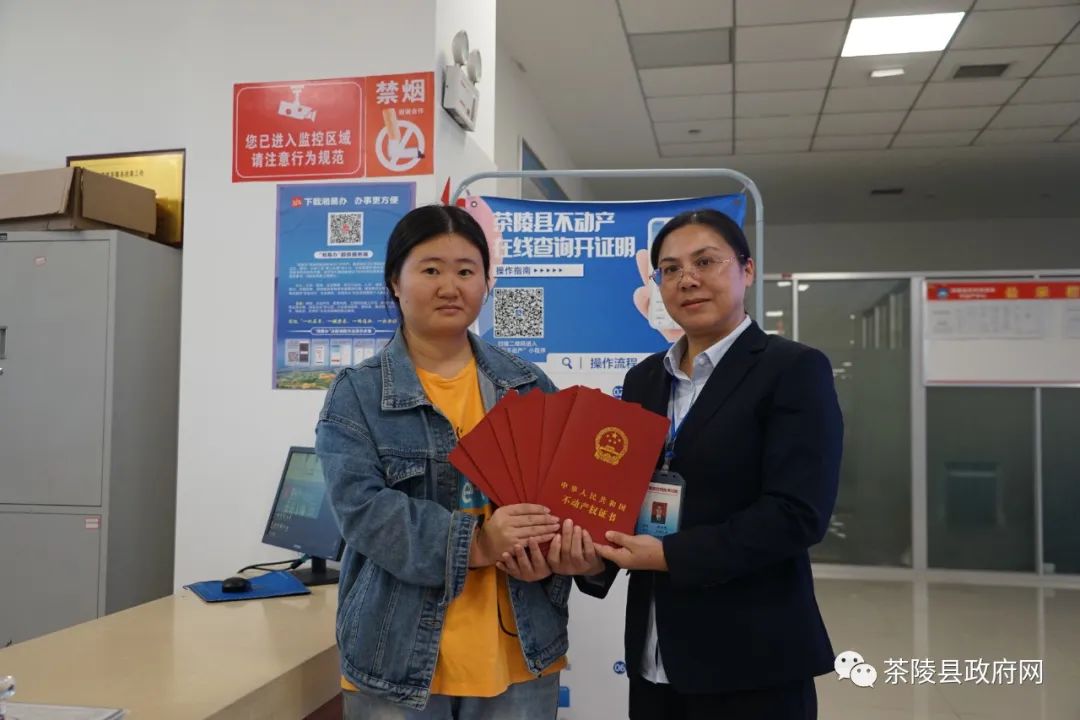 10月20日,茶陵县光华陶瓷有限公司工作人员在县政务服务中心不动产登记中心窗口顺利领取到了六本不动产权证书,这是茶陵县今年打造的第二个"竣工即交证"示范项目。