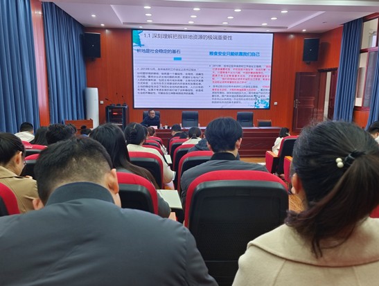 课程以《严守耕地保护“红线”,筑牢粮食安全“底线”》为题,从“习近平总书记关于耕地保护重要论述,耕地保护主要制度,耕地保护工作面临形势及把长牙齿的耕地保护措施落实落地”四个方面,讲授了一堂生动的耕地保护课。