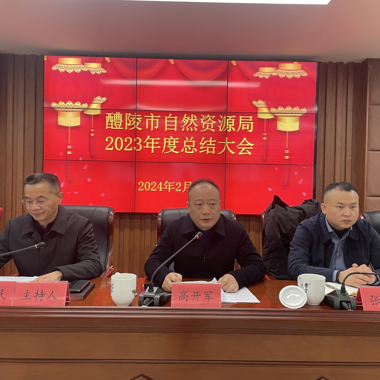 2月6日上午,醴陵市自然资源局隆重召开2023年度总结大会,全面总结2023年工作情况,谋划部署2024年工作重点。局党组书记、局长高开军出席并讲话,局领导班子、全体干部职工参加会议。