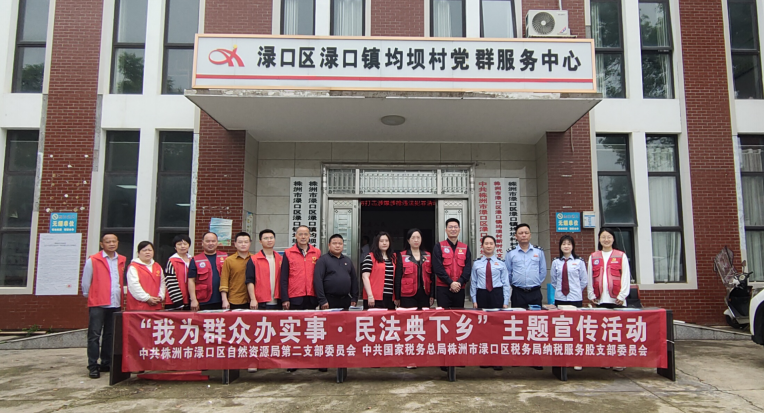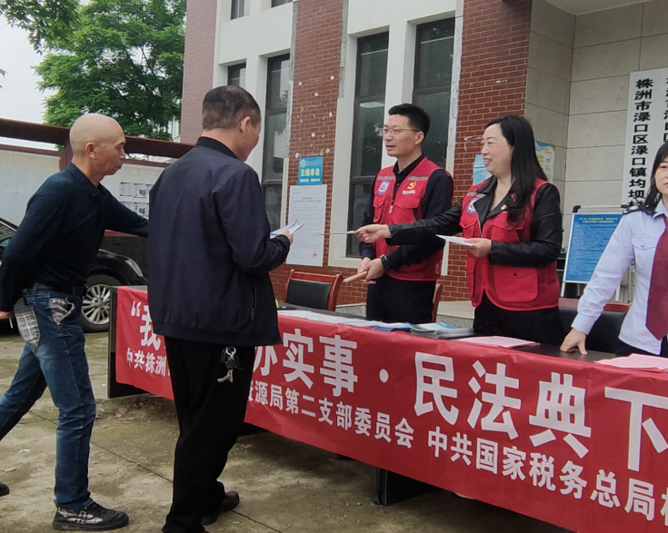 4月18日,渌口区自然资源局不动产登记中心和国家税务总局株洲市渌口区税务局走进渌口区均坝村,联合开展"我为群众办实事·民法典下乡"主题党日活动,以"政策宣讲+现场答疑"的方式,为村民们解读最新的不动产政策以及税收政策,让民法典和税法走进村民们的内心,为人民美好生活保驾护航。