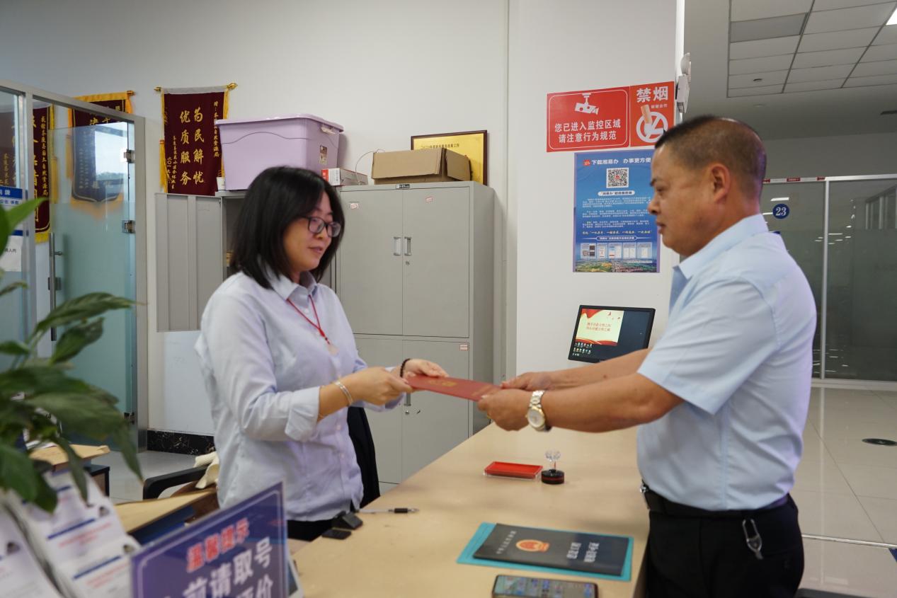 4月19日对润海电子电器玻璃二期项目进行联合竣工验收时,不动产登记中心提前介入,现场堪查,提前出具权籍调查报告,指导企业准备不动产登记申请材料,安排专人提前进行预审,实现竣工验收备案等事项并联办理。4月24日该项目负责人拿到竣工验收备案,不动产登记中心为其开通绿色通道,在受理该业务2小时后出证。负责人在拿到不动产权证书后,满怀欣喜地说:"没想到现在办证服务这么好,真真实实地为群众着想,我一趟都没多跑!"