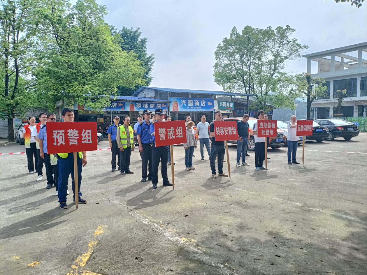 演练过程中,各职能小组严格遵循"以人为本、避让为主、统一领导、分级负责"的原则,预警组利用电话、信息发布等方式及时发布预警信息,提高村民对地质灾害防灾避险工作的参与度和警惕性;警戒组、应急救援处置组火速赶赴险情点,利用鸣锣、敲门呼喊警醒周边所有住户赶紧撤离,以最快的速度引导住户按照指定的安全路线有序撤离,对于行动不便或"受伤"的群众,通过搀扶或其他方式确保人员安全撤离;所有人员到达安全区域后,由转移安置组组织人员转移到安置点村部;后勤保障组负责灾民生活物资的应急保障。
