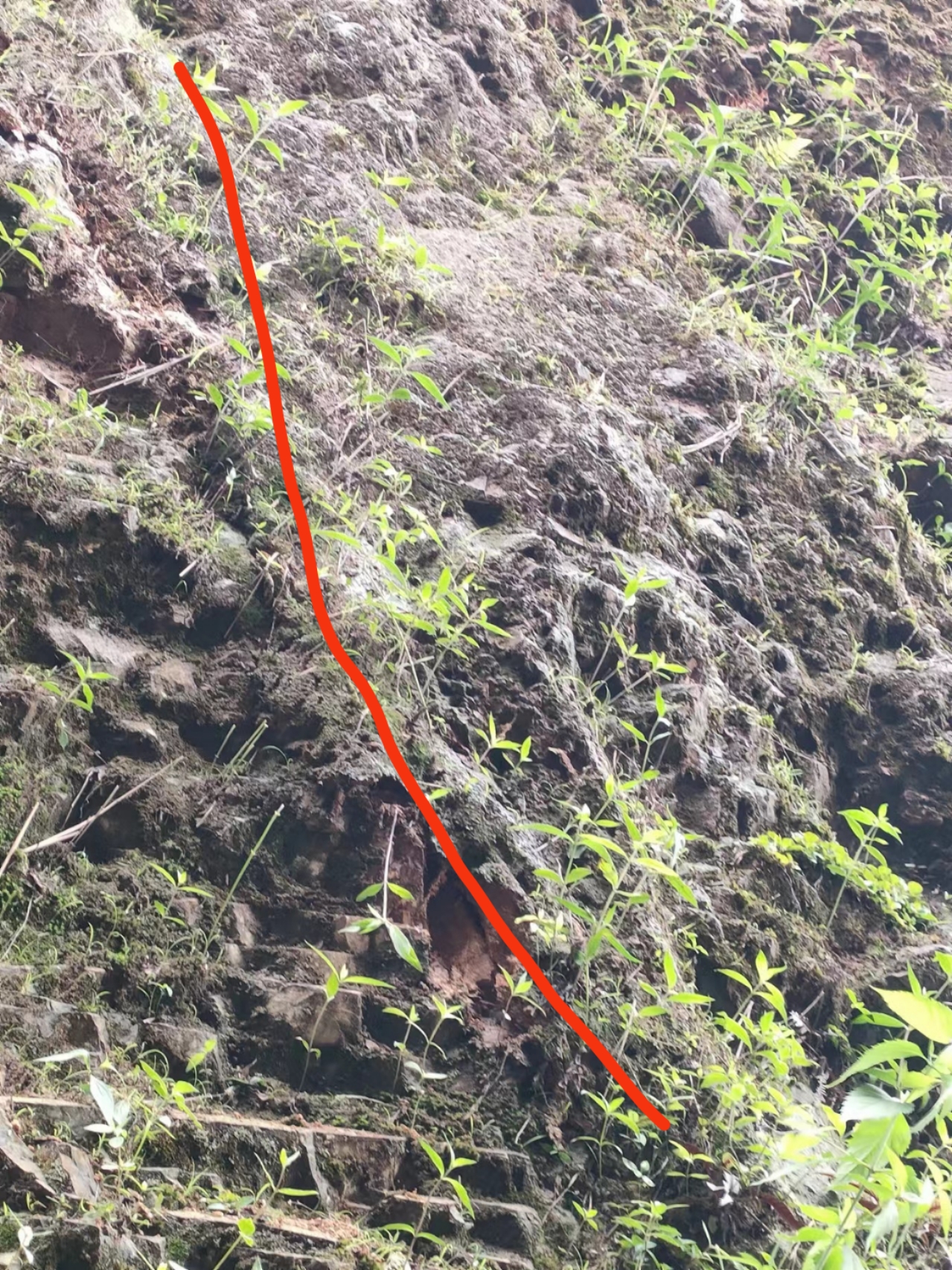 5月1日,首次山体崩塌情况及尚未垮塌的山体裂缝
