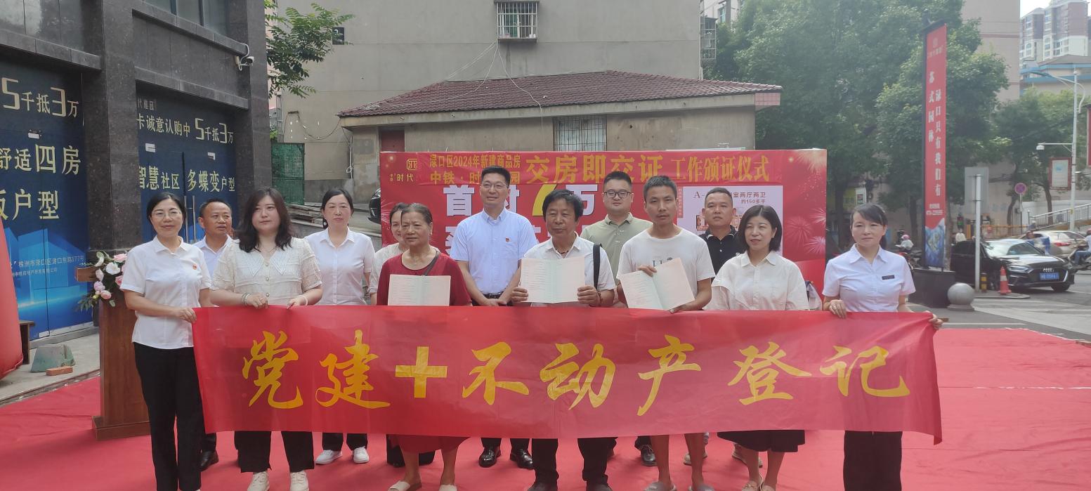 5月28日上午,渌口区2024年首个新建商品房"交房即交证"仪式在中铁•时代雅园项目现场举行,主办方现场为3户业主发放了商品房不动产权证。