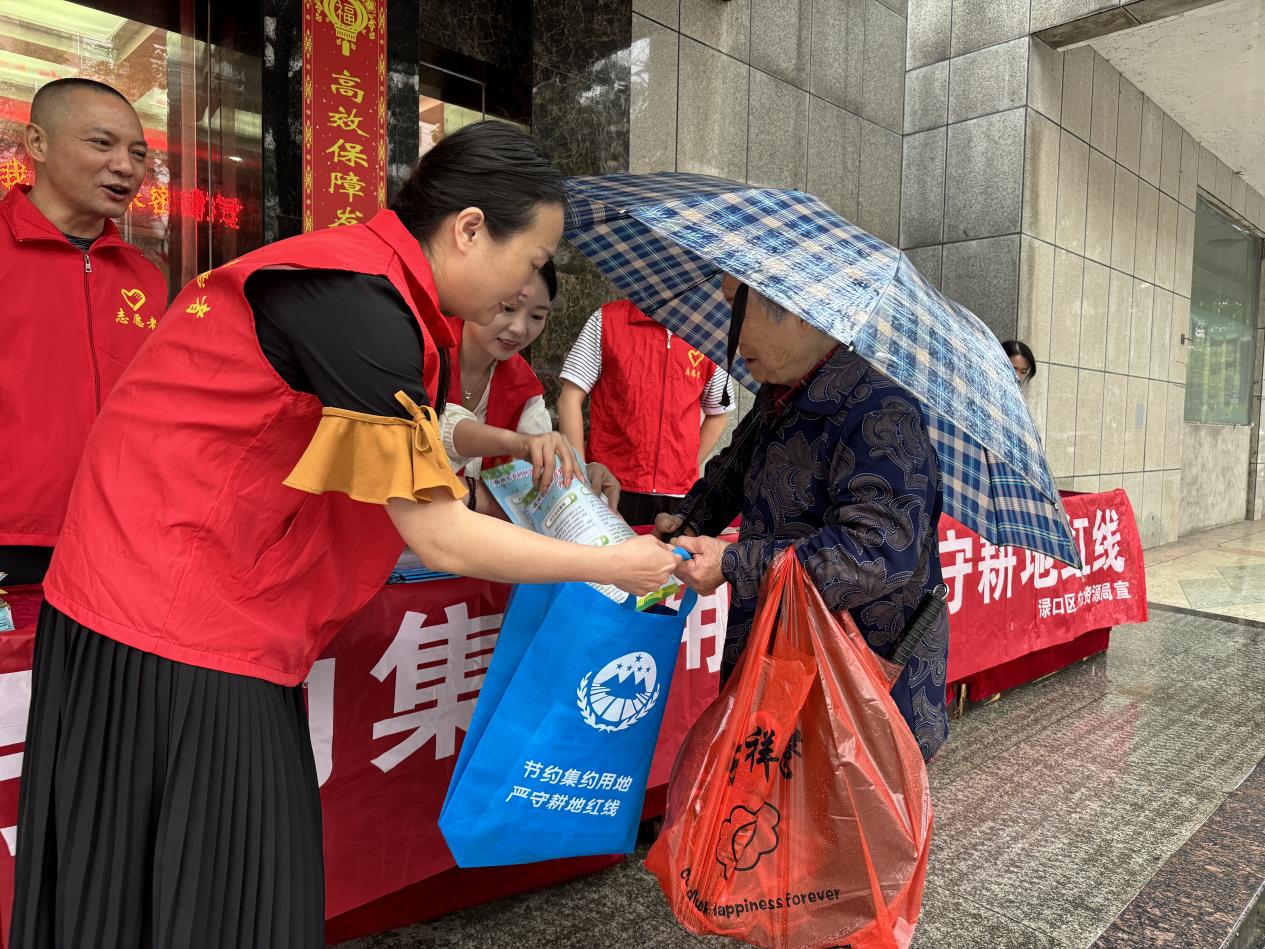 在宣传活动现场,通过设立宣传展牌、宣传咨询台,接受群众咨询,并向过往的群众大力宣传、解读有关国土资源知识,发全国"土地日"宣传单、地灾防治、村民建房等资料。同时,宣传小分队还向周边群众发放"土地日"宣传知识手册、自然资源法律宣传单,向过往群众宣传保护耕地,宣传耕地保护红线、集约节约用地的重要意义、地质灾害危害性及防治措施以及自然资源法律法规知识。