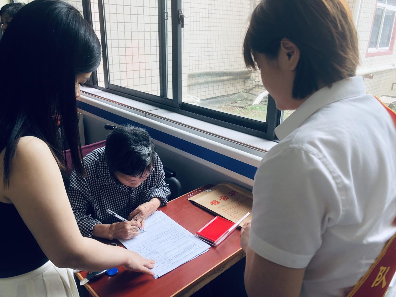 6月28日,醴陵市不动产登记中心接到敬老院李女士的电话,因行动不便无法前往登记大厅办理商品房转移登记手续。了解到这一情况后,不动产登记窗口将服务窗口前移,当天下午2点工作人员便携带业务相关要件,上门为行动不便的李女士办理面签。据悉,李女士今年76岁,虽因身体原因一直住在醴陵市碧山老年公寓中心,但意识清楚,为李女士进行资料审核的过程中,李女士对工作人员提出的相关问题能够清楚准确的回答,整个业务流程进展顺利。