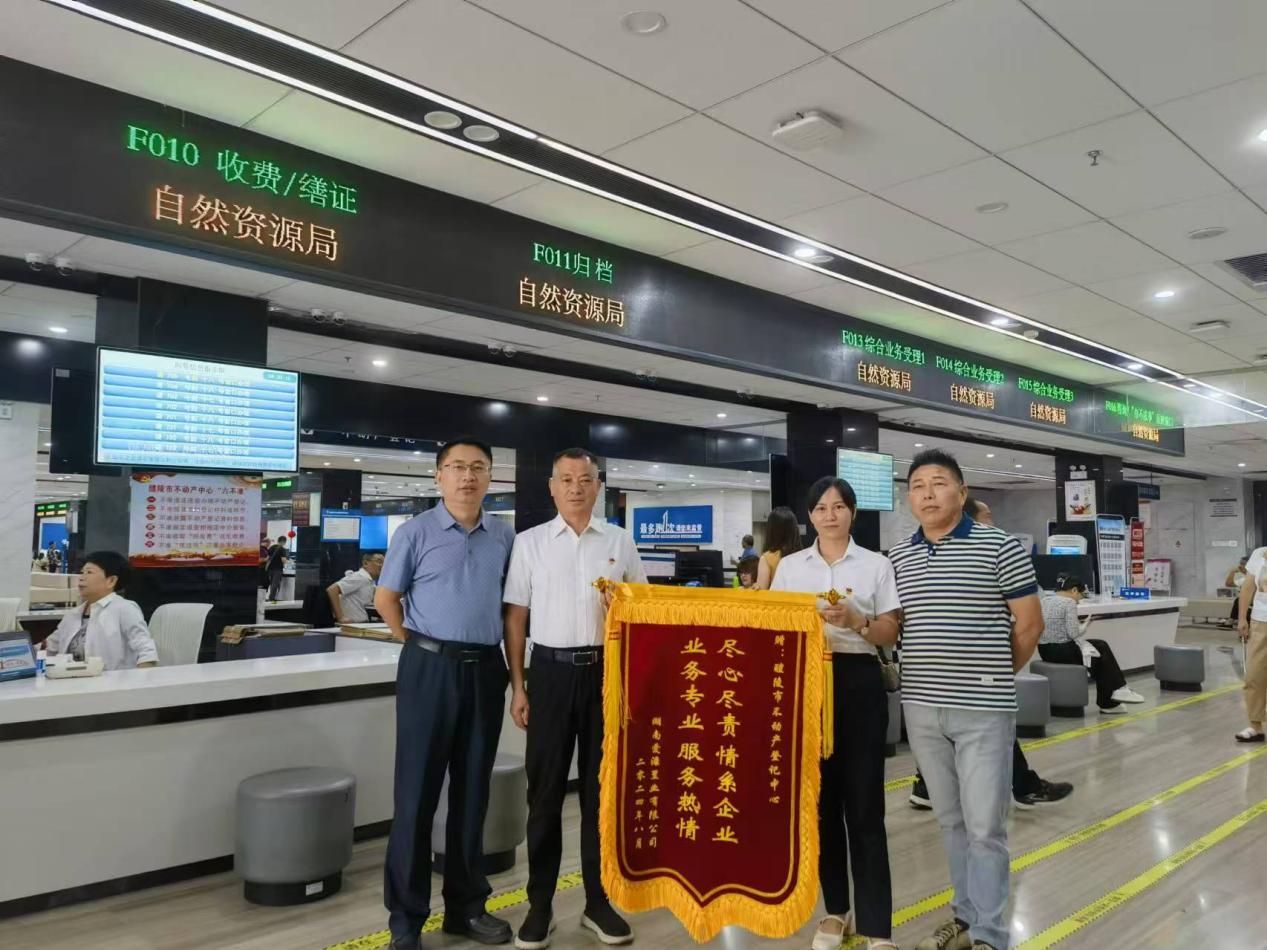 8月28日,湖南爱渌置业有限公司工作人员将一面锦旗送到不动产登记窗口工作人员手上,并表示真诚的感谢。小小锦旗,情谊深重,不仅饱含该公司对醴陵市不动产登记中心工作的认可,也对中心的贴心服务表示肯定。