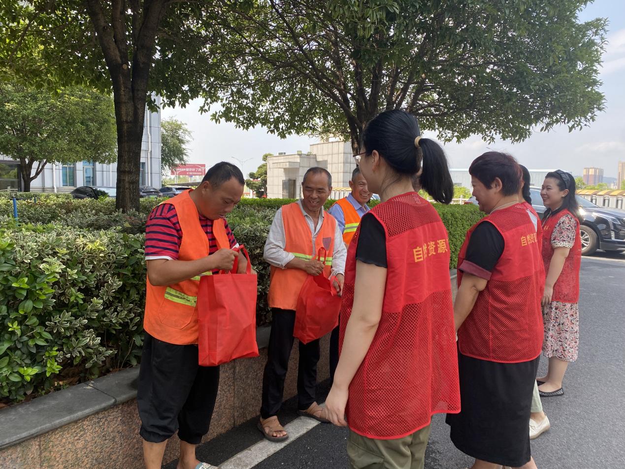 活动过程中,志愿者们给环卫工人送上了防暑降温物品和慰问礼品,缓解他们在高温下工作的辛苦与疲惫,并叮嘱他们在守护家园环境的同时一定要注意作业安全和防暑降温。