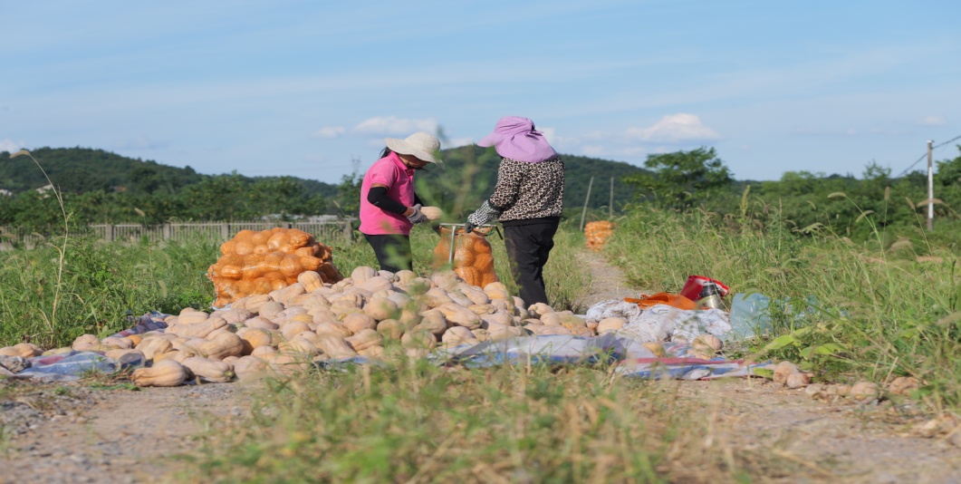 黄陂田村采取"供销社+村集体+农业企业+农户"的生产经营模式,为农户提供了物资、技术指导和销售渠道。截至目前,黄陂田村南瓜种植亩产5000斤,总产值150万元;玉米种植预计亩产2000斤,总产值达16万元,带动周边农民就业30余人,解决抛荒面积220余亩。进一步强化了产业发展联农带农,实现地不荒、人不闲、产业兴、腰包鼓的美好愿景。