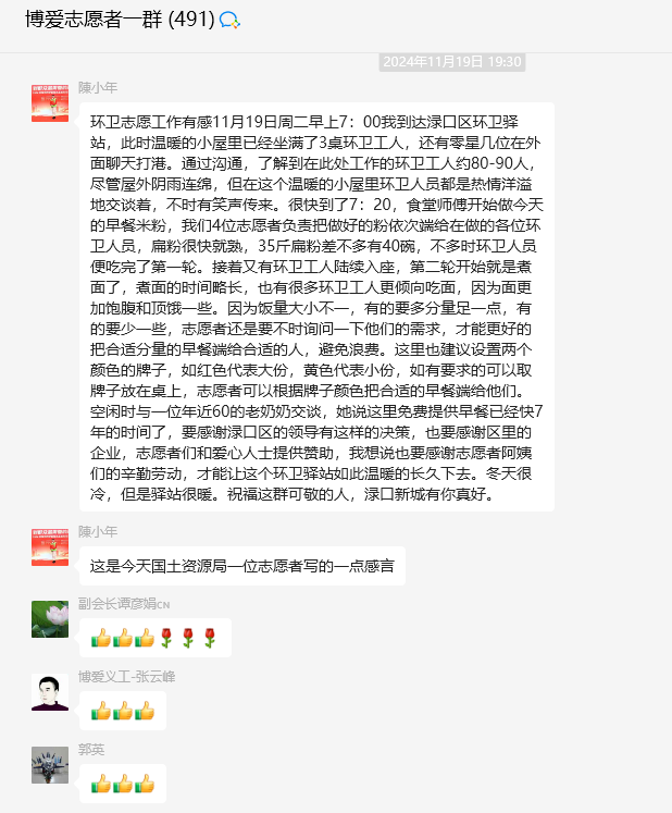 近日,渌口区自然资源局青年志愿者李晓晨的一篇公益感言发在了博爱志愿者群,引起了大家的点赞和共鸣,他把公益服务和感受和建议都详细地写了下来,也让更多的青年了解到了渌口"爱的味道"——环卫工驿站。
