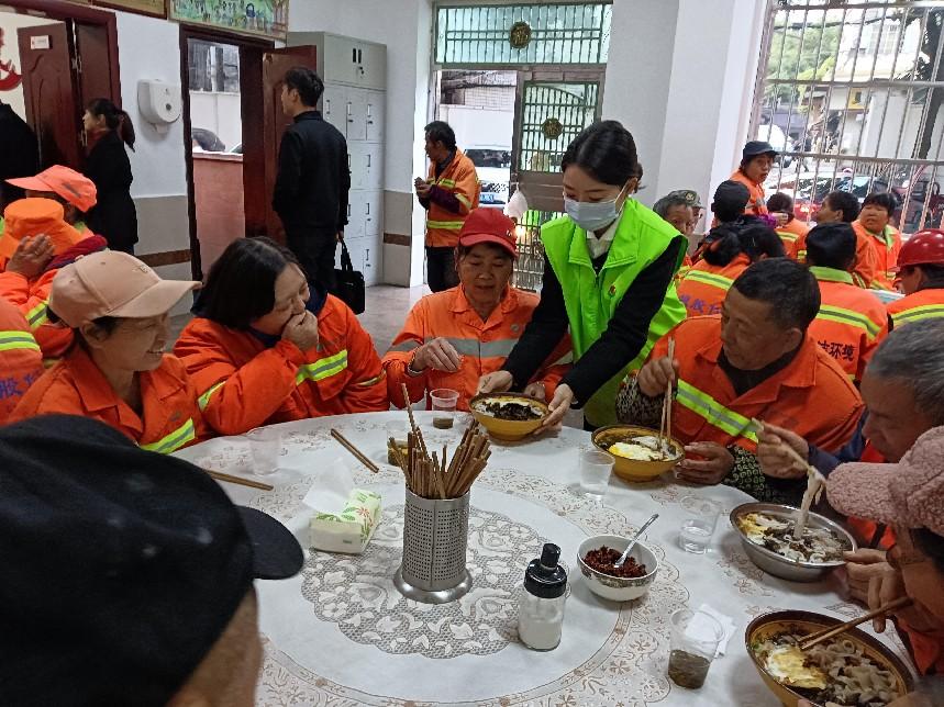 渌口区"环卫工驿站爱心早餐"项目由渌口区博爱志愿者联合会发起,自2018年6月正式运行,为渌口区环卫工友以粉、面、包子、粥、饺子的形式提供免费的"爱心早餐"。无论刮风下雨,6年多来从未间断(疫情期间除外),为渌口区300多位环卫工人提供了近17万余份早餐,充分展现了渌口"小驿站"给社会带来的"大温暖"。