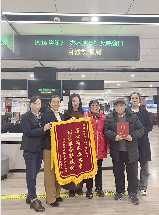 "你们的服务真是太贴心,太有人情味了,给你们点赞!"77岁的张先生将一面印有"真心为民办实事 优质服务解民忧"的锦旗送到不动产登记中心。对登记中心解决困扰他多年的办证问题表达诚挚谢意,对登记人员的优质服务和高效审批表示高度赞扬。