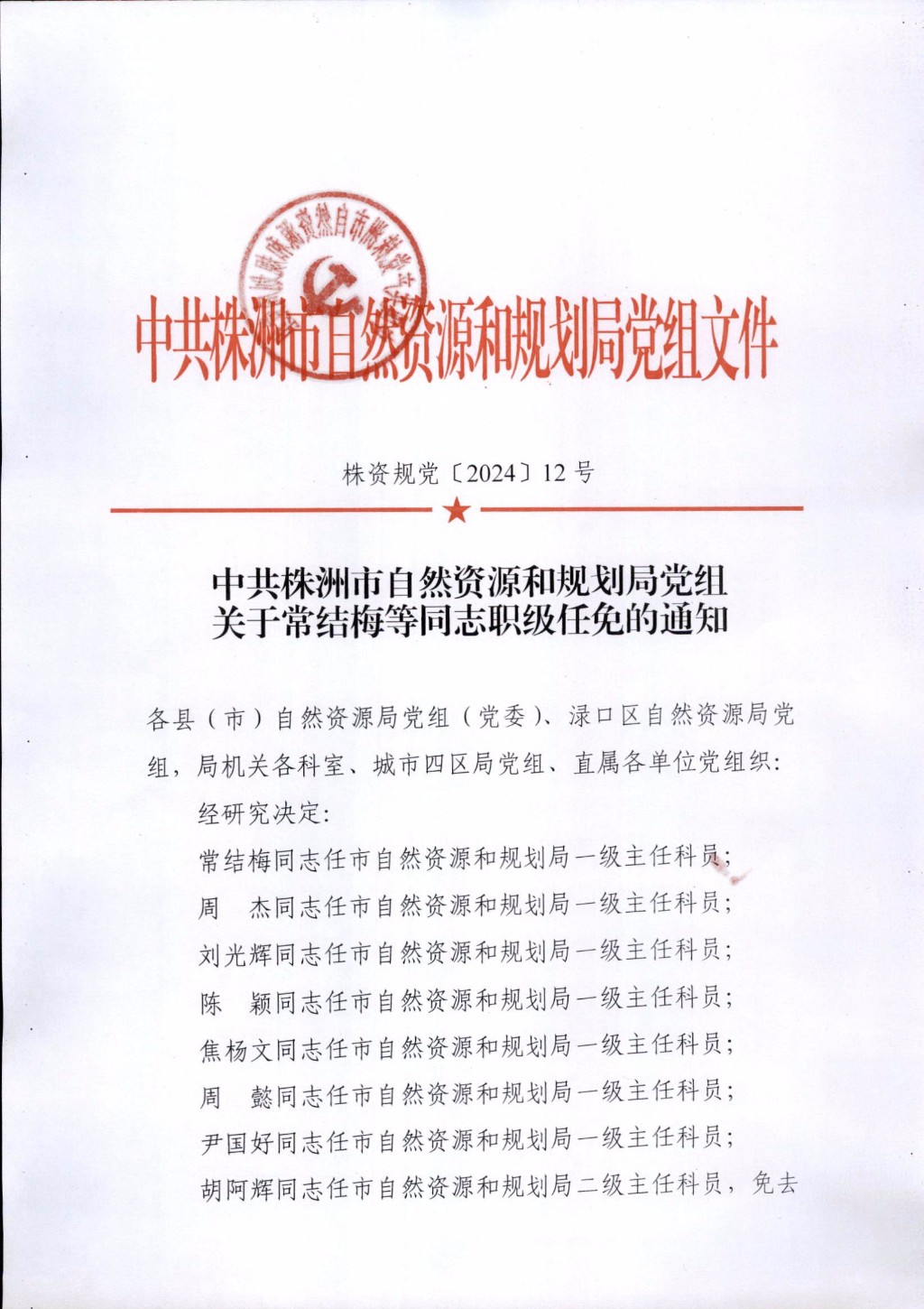 关于常结梅等同志职级任免的通知(株资规党[2024]12号)