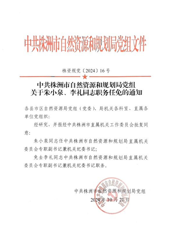 关于朱小泉、李礼同志职务任免的通知(株资规党[2024]16号)