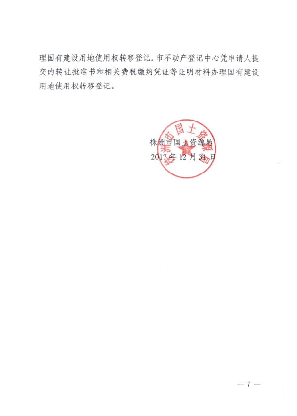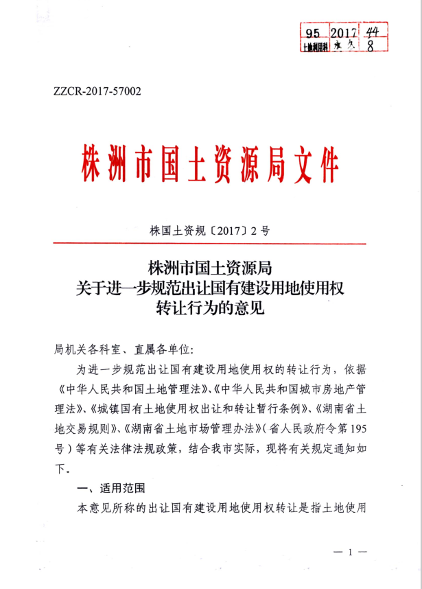 关于进一步规范出让国有建设用地使用权转让行为的意见 (株国土资规〔2017〕2号)