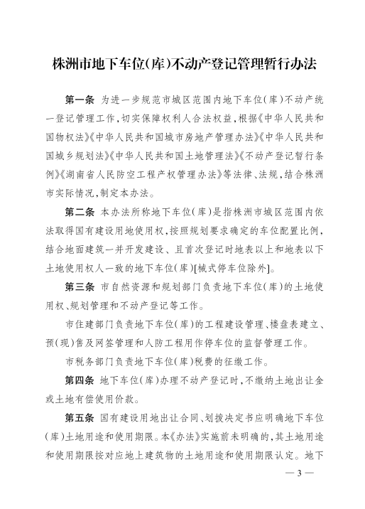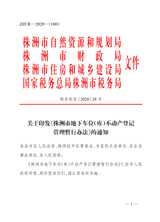 关于印发《株洲市地下车位(库)不动产登记管理暂行办法》的通知( 株资规发〔2020〕28号)