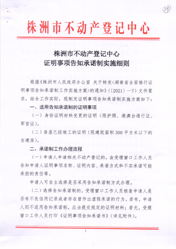 株洲市不动产登记中心证明事项告知承诺制实施细则