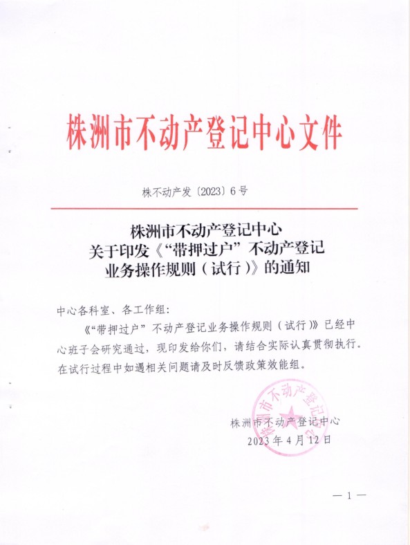 株不动产发〔2023〕6号,关于印发《“带押过户”不动产登记业务操作规则(试行)》的通知