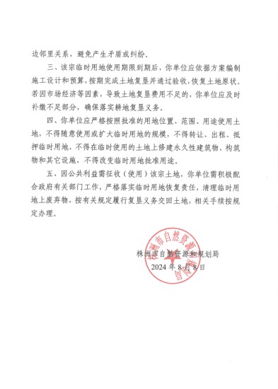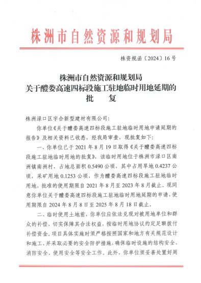 关于醴娄高速四标段施工驻地临时用地延期的批复