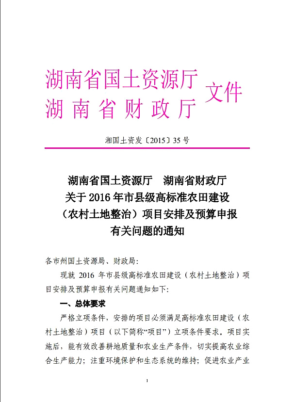 关于2016年市县高标准农田建设(农村土地整治)项目安排及预算申报有关问题的通知