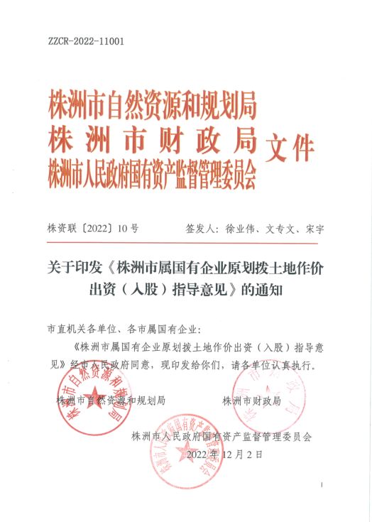 株洲市属国有企业原划拨土地作价出资(入股)指导意见
