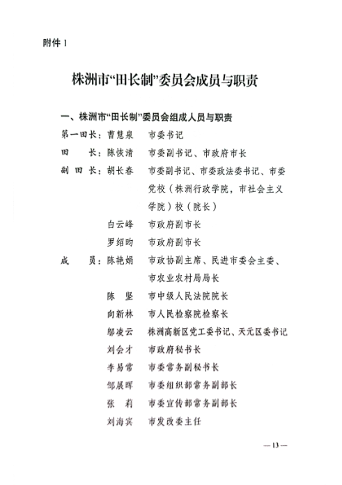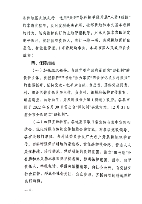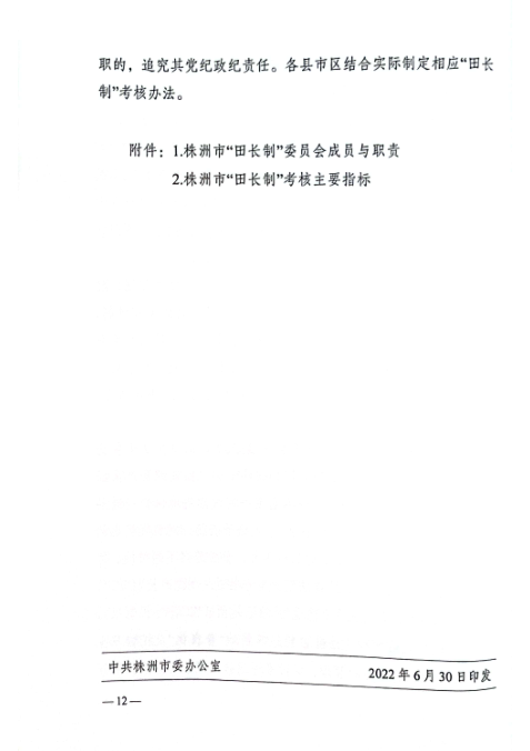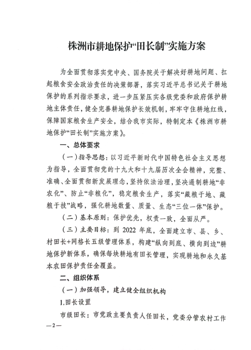 中共株洲市委株洲市人民政府关于全面推行《株洲市耕地保护田长制实施方案》