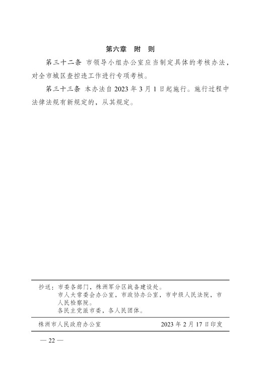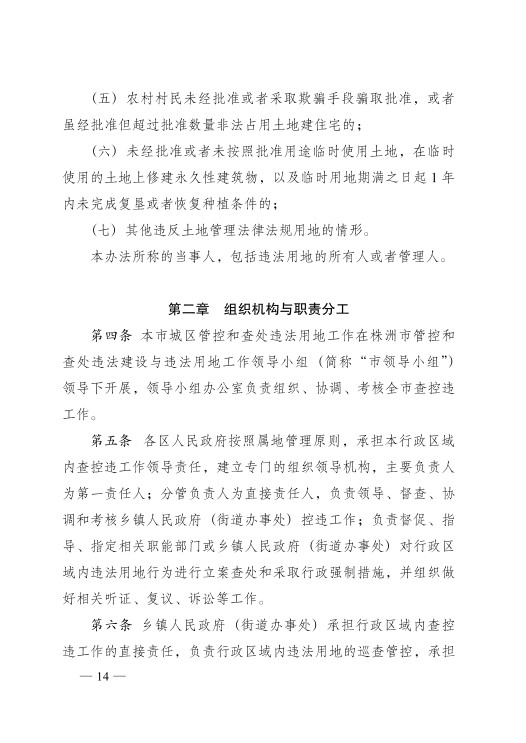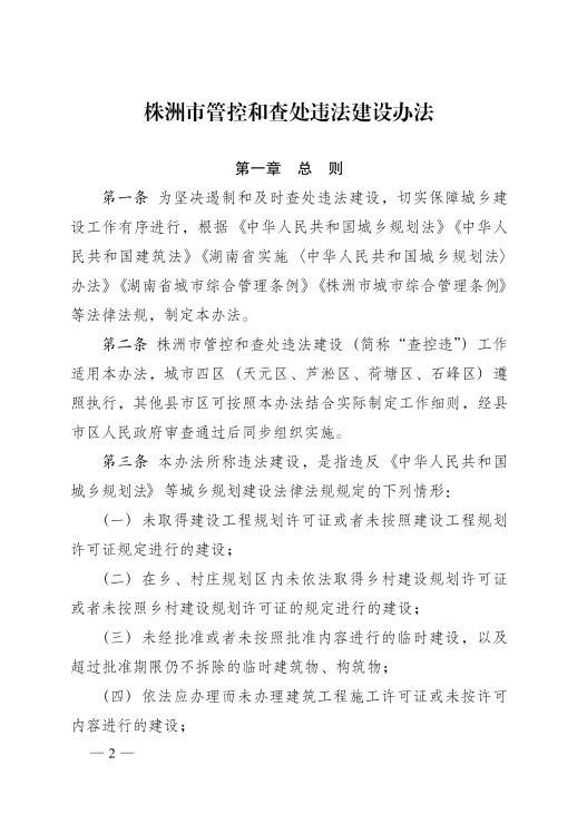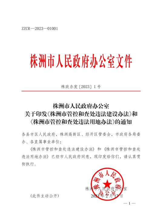 株洲市人民政府办公室关于印发《株洲市管控和查处违法建设办法》和《株洲市管控和查处违法用地办法》的通知