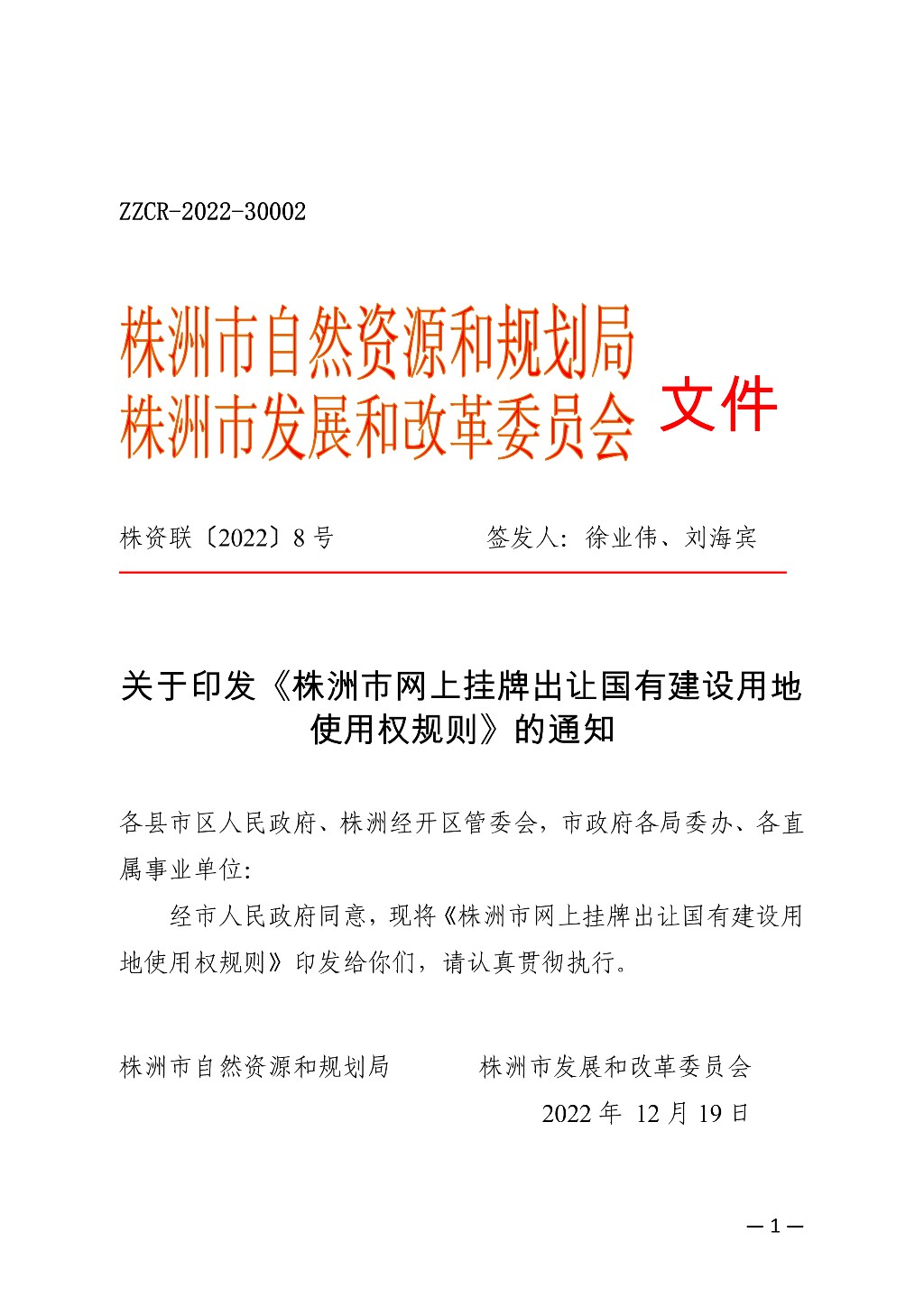 关于印发《株洲市网上挂牌出让国有建设用地使用权规则》的通知