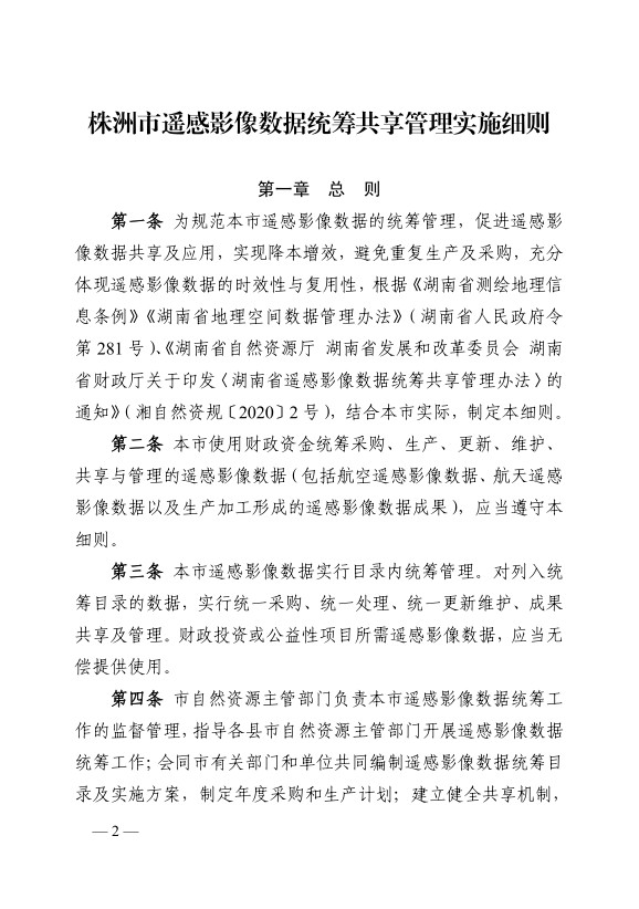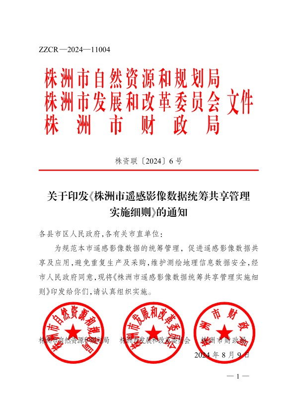 关于印发《株洲市遥感影像数据统筹共享管理实施细则》的通知