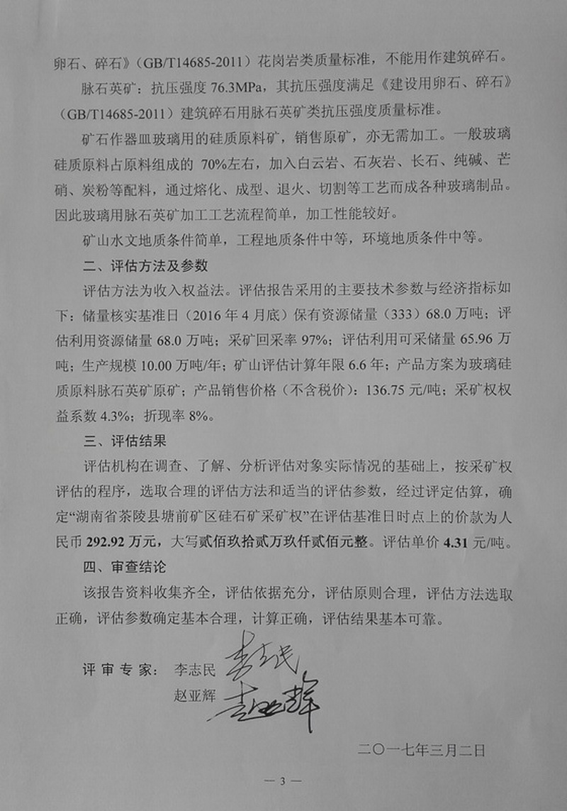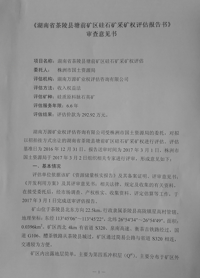 茶陵县塘前矿区硅石矿价款评估报告.pdf
