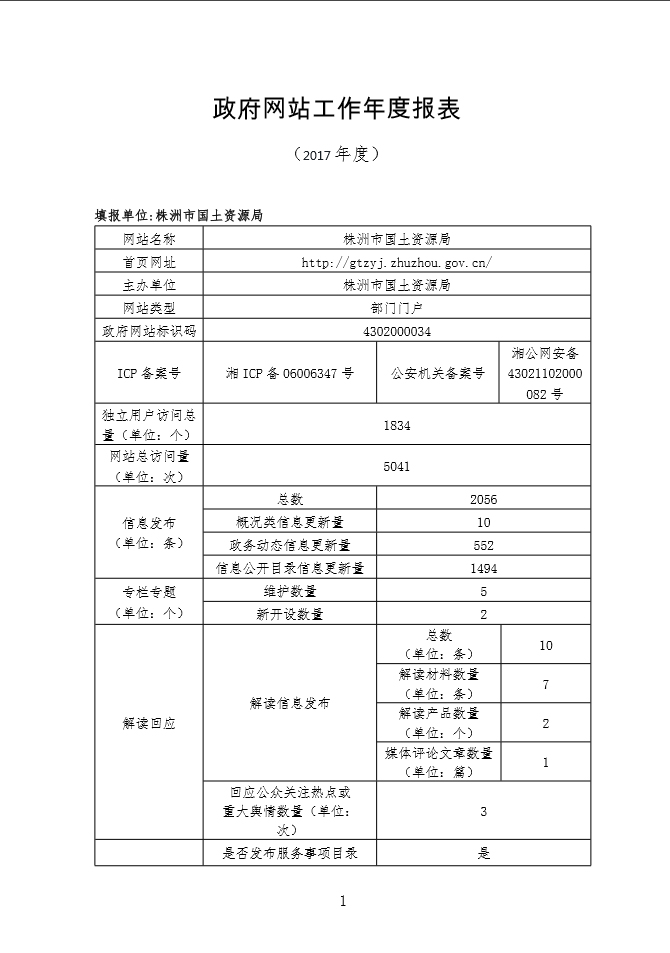 政府网站工作年度报表(2017年度)