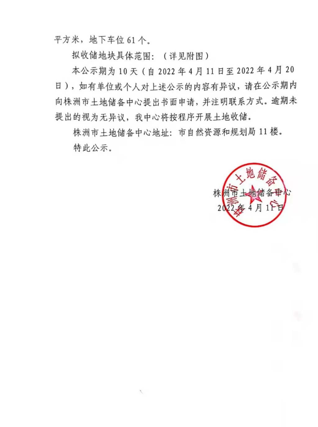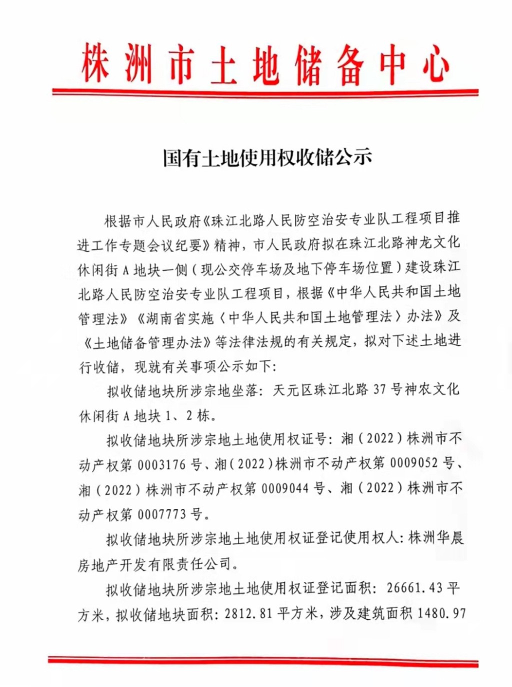 国有土地使用权收储公示