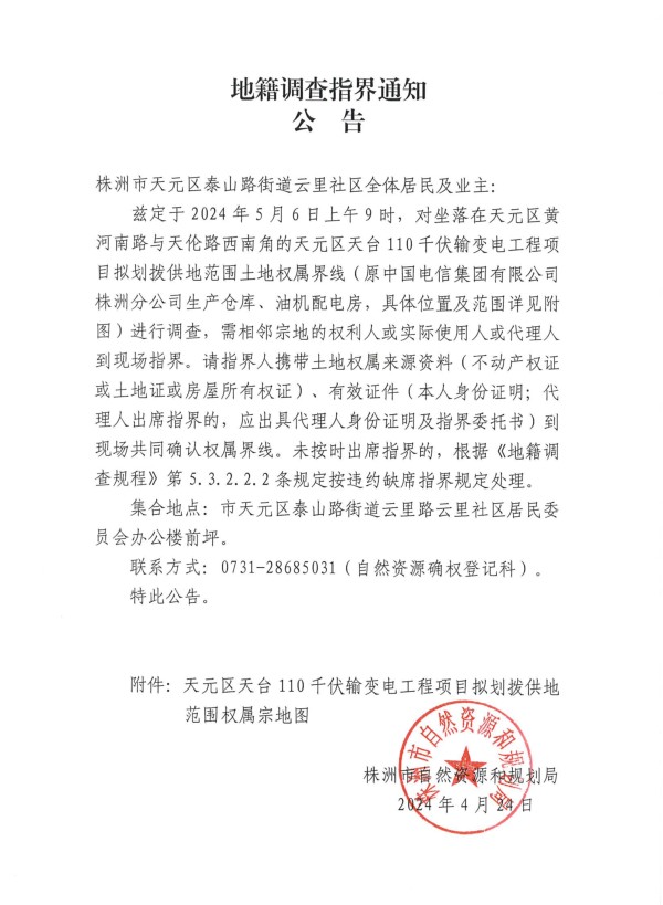 湖南株洲天元区天台110千伏输变电工程项目拟划拨供地范围权属宗地图