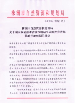 关于湖南攸县抽水蓄能水电站平硐开挖弃渣场临时用地延期的批复