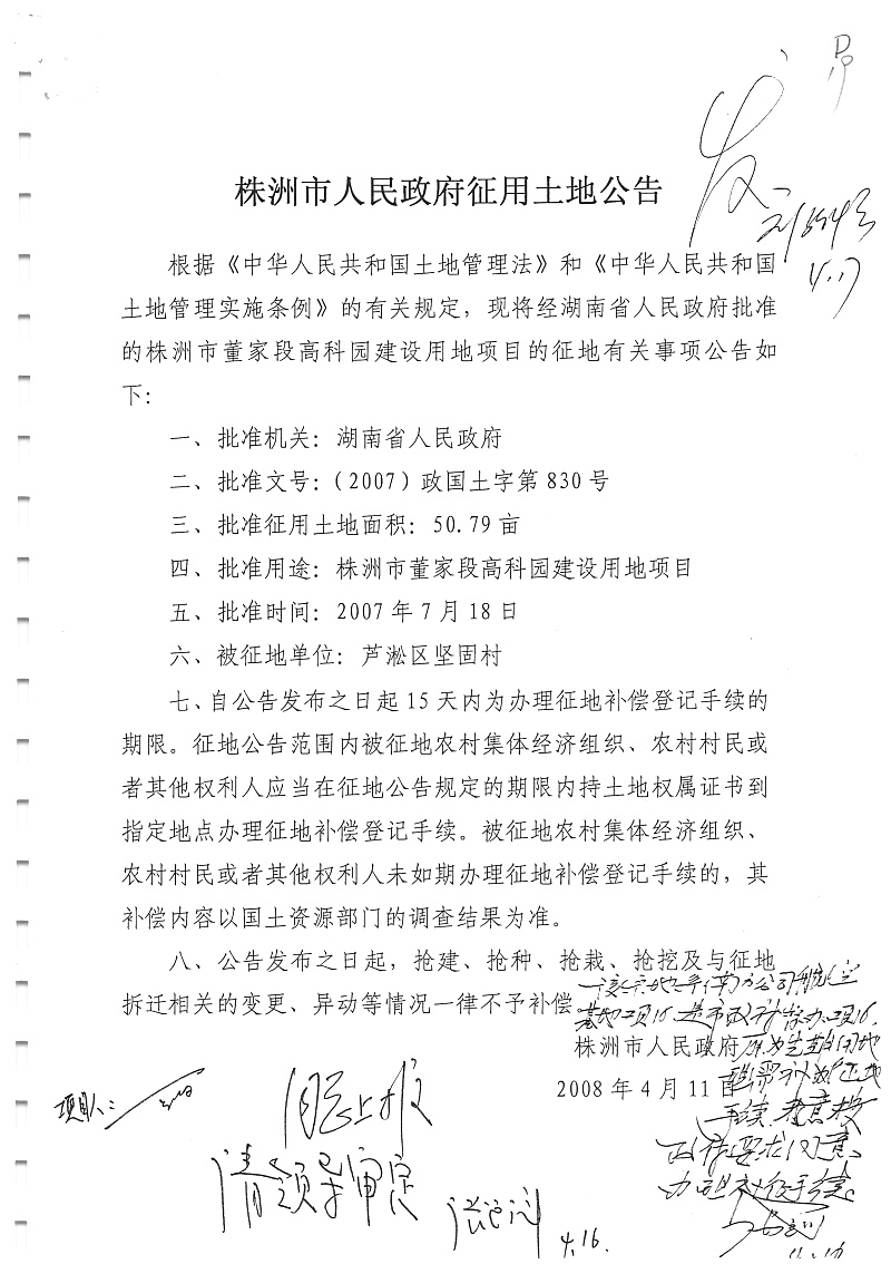 征地公告(董家段高科园南方公司航空基地50.79亩)