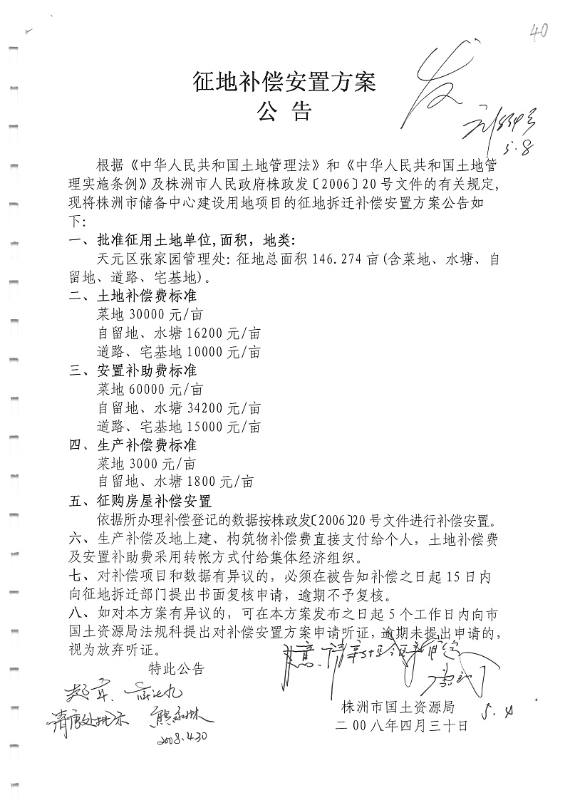 安置公告(天元区张家园管理处储备用地146.274亩)