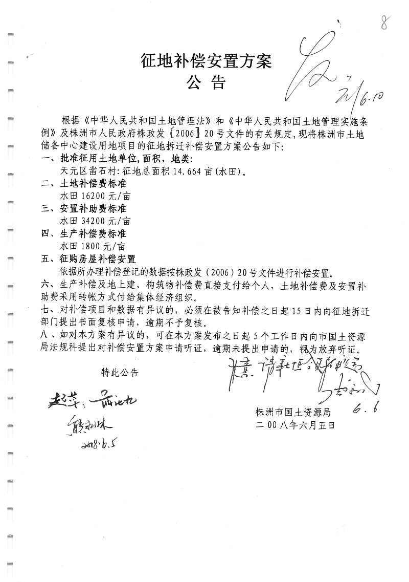 安置公告(天元区凿石村储备地14.664亩)