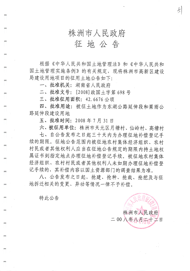 征地公告(东湖公路延伸段和栗雨公路延伸段)