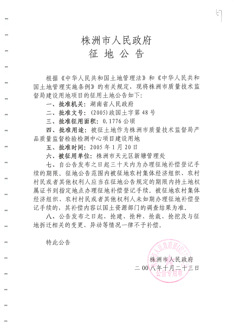 征地公告(嘉钟医疗器械和时菱交通设备项目)