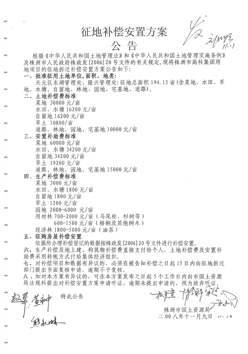 安置公告(高科集团时菱交通、钟嘉医疗(多晶硅)