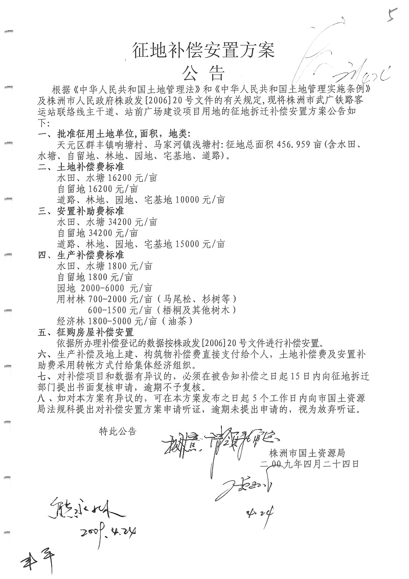 安置公告(武广铁路客运站联络线主干道、站前广场)