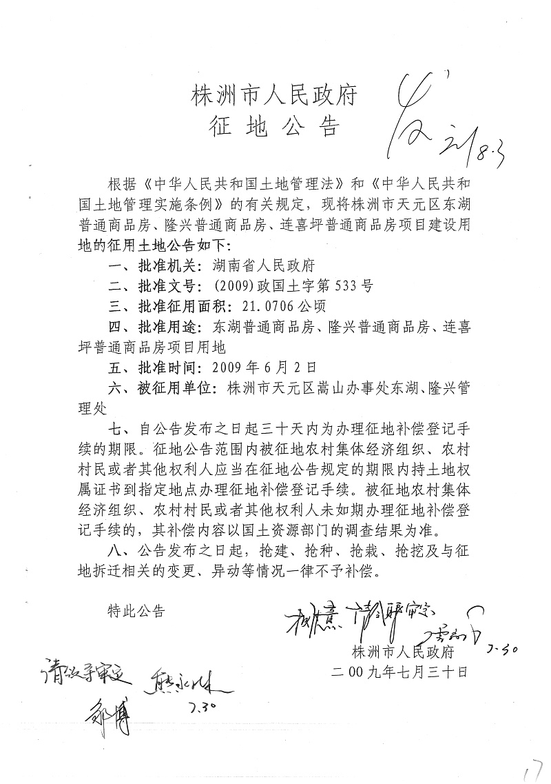 征地公告(东湖、隆兴、连喜坪普通商品房)