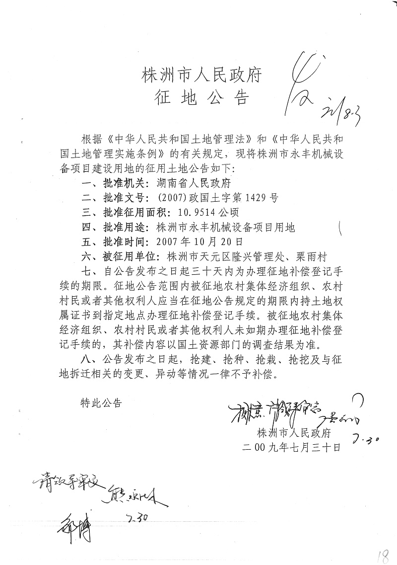 征地公告(永丰机械设备)