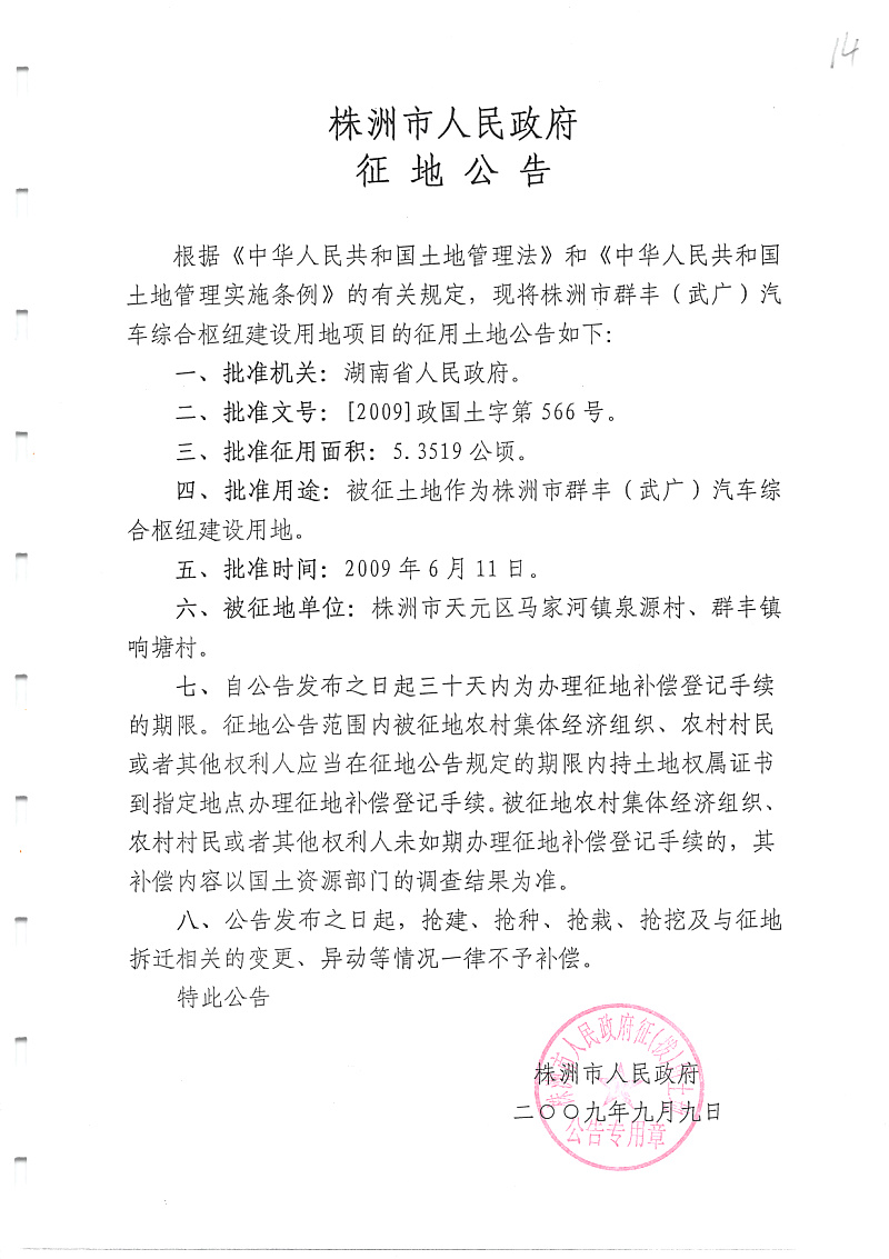 征地公告(群丰(武广)汽车综合枢纽项目)