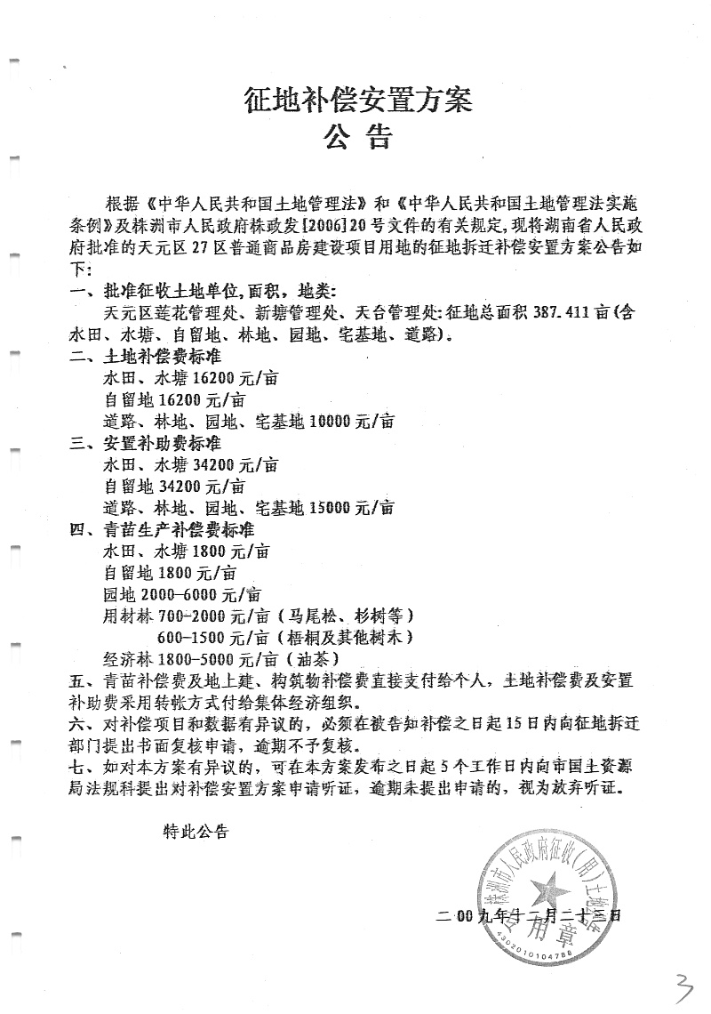 安置公告(天元区27区普通商品房)