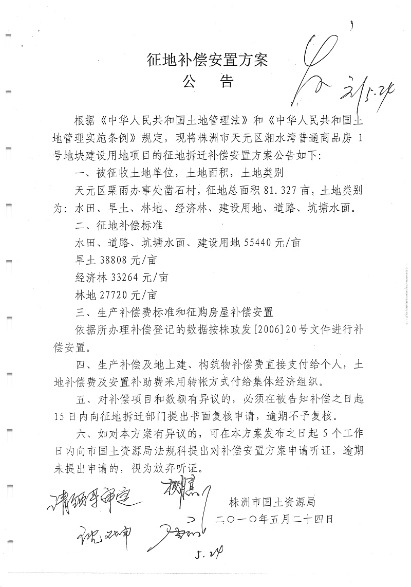 安置公告(天元区湘水湾普通商品房1号地块)